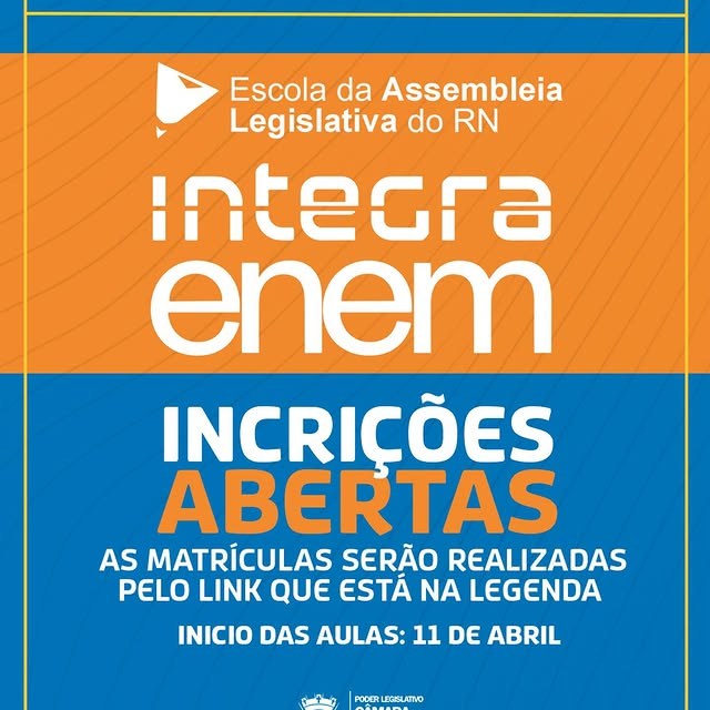 A iniciar no próximo dia 11 de abril de 2026 com término programado para novembro, o Integra Enem trabalhará conteúdos da prova através de transmissões virtuais, que acontecerão aos sábados no plenário Bevenuto José de Paiva.